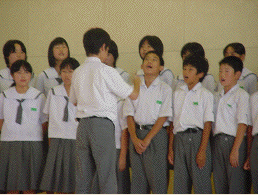 “歌う”ということは,人に強制されてできるものではありません。自分の殻(から)を破る勇気とエネルギーを要し,Cまた,まわりの友達との信頼関係がなくては,とても声を出すことはできません。