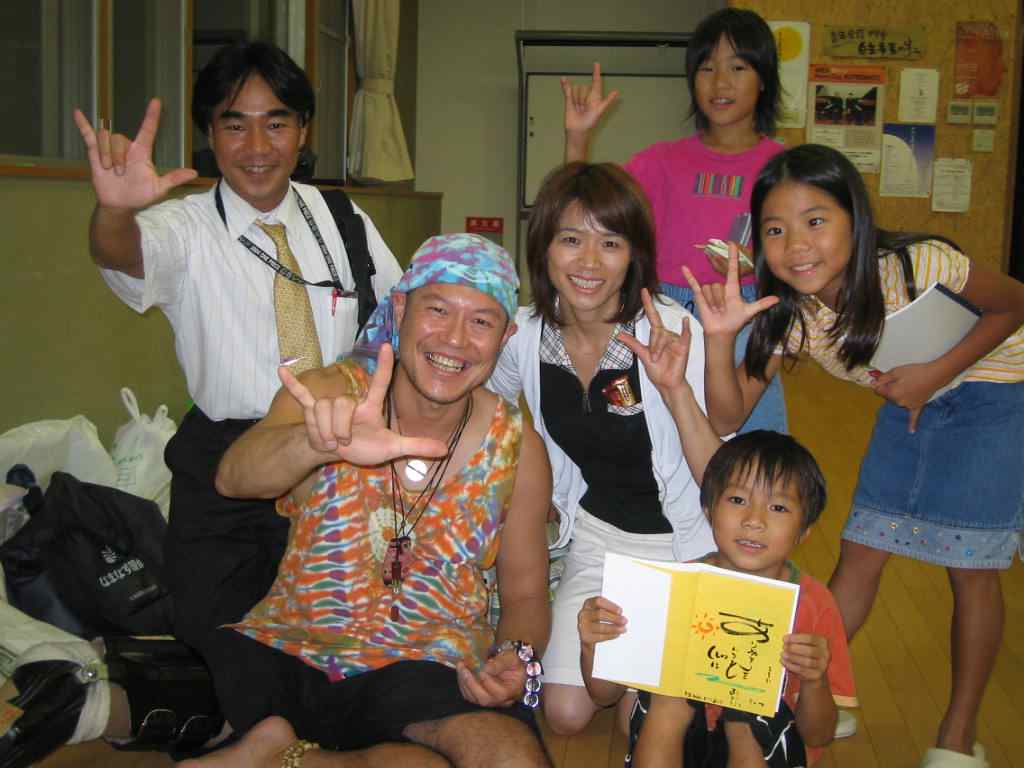 最後は記念撮影!「ラブ&ピース」のポーズで!!(今回は「あたしんち」の家族(^^)も一緒に参加!)